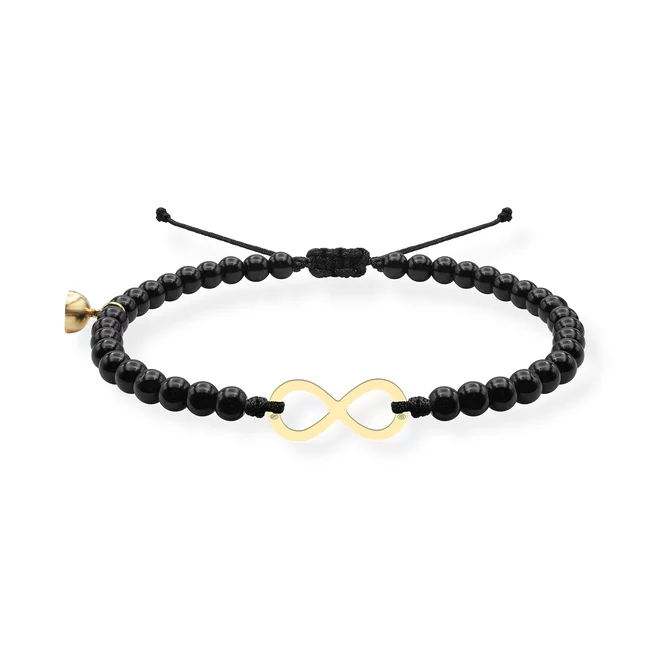 Bratari cuplu, Argint 925 Premium, snur reglabil,onix,bilute argint si infinit (17 mm)