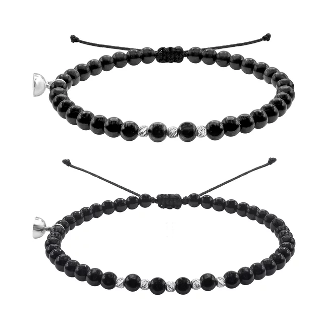 Tip bijuterie: Bratari magnetice cuplu Argint 925 Premium, snur, onix si bilute argint cu striatii (17 mm);