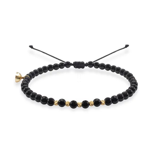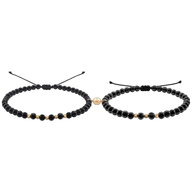 Bratari de cuplu, bilute Argint 925 Premium, snur reglabil si onix (2,5 mm)