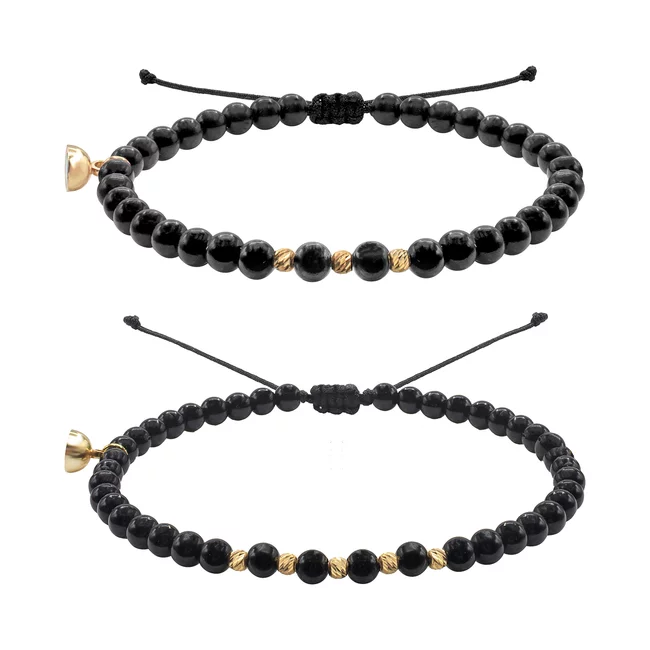 Bratari cuplu magnetice Argint 925 Premium, snur reglabil si inima (7.5 mm)