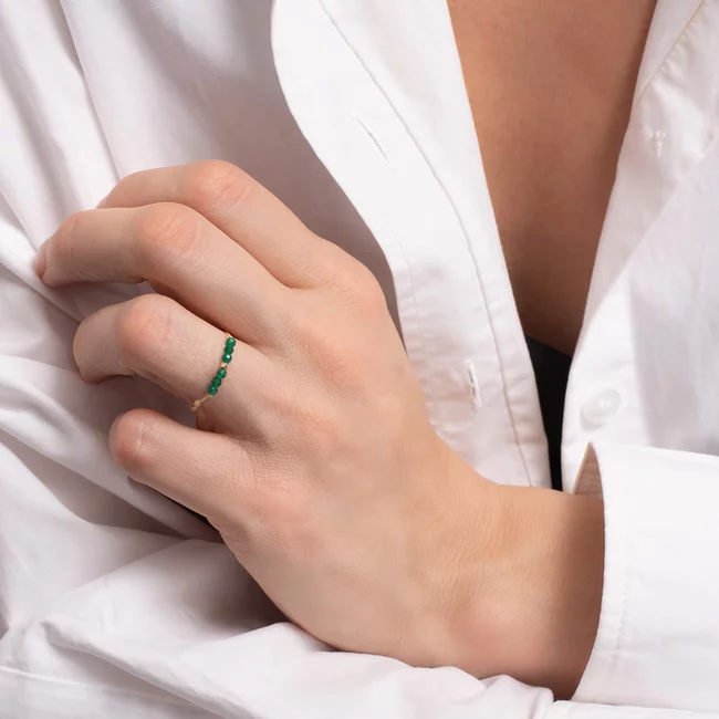 Inel Aur 14K Premium, biluta si pietre naturale malachit, snur reglabil