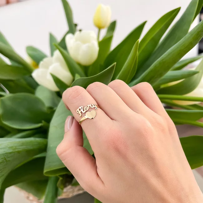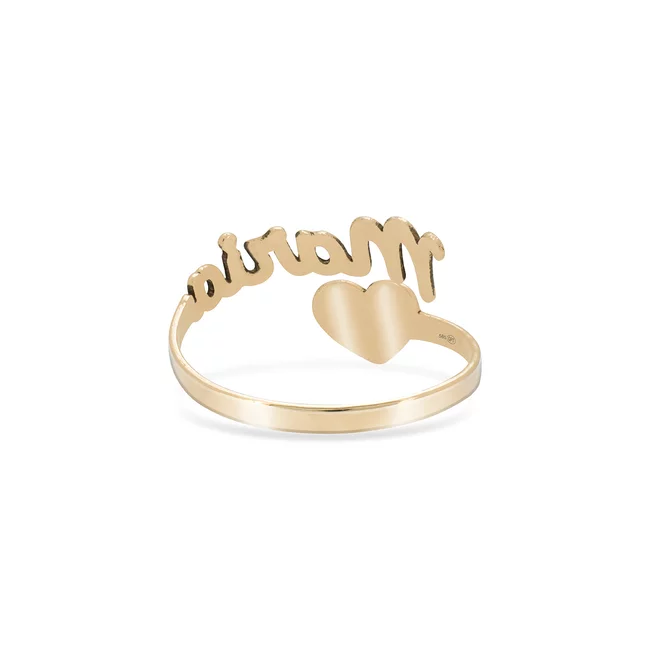 Alege inelul din aur pe care il poti personaliza cu numele unei persoane dragi, numele tau sau un cuvant cu insemnatate deosebita si o inimioara delicata.