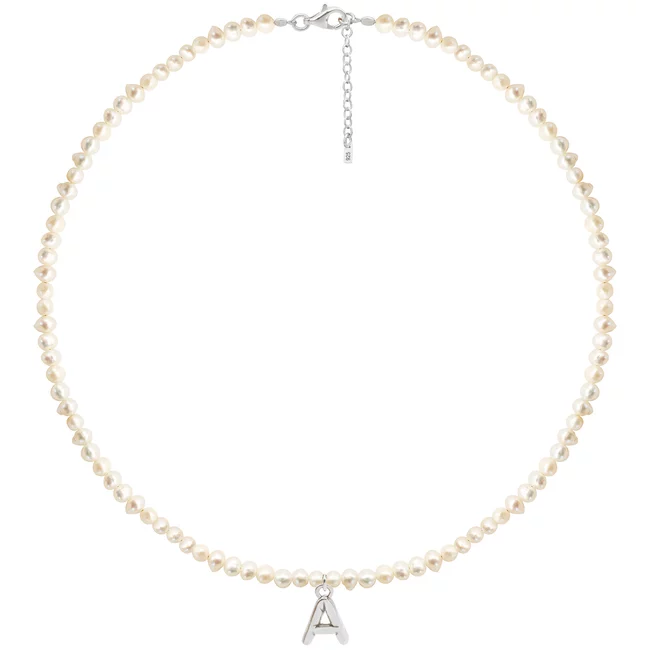 Colier Argint cu Initiala 3D tip balon si Perle de Cultura