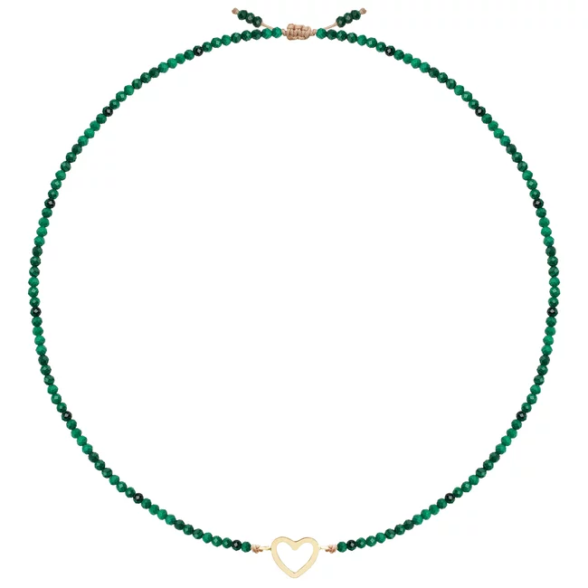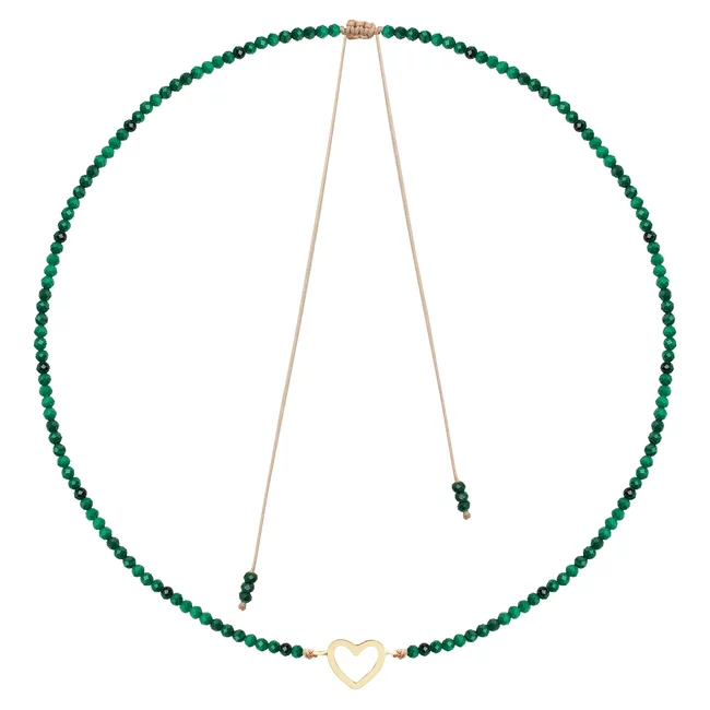 Colier reglabil Aur 14K Premium dama - snur, malachit si inima (14 mm)